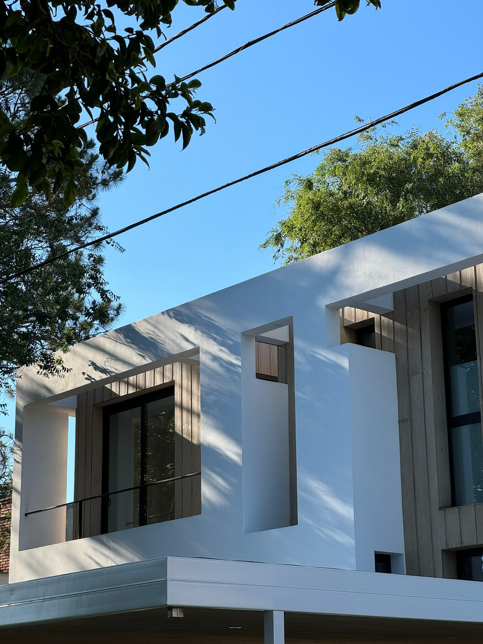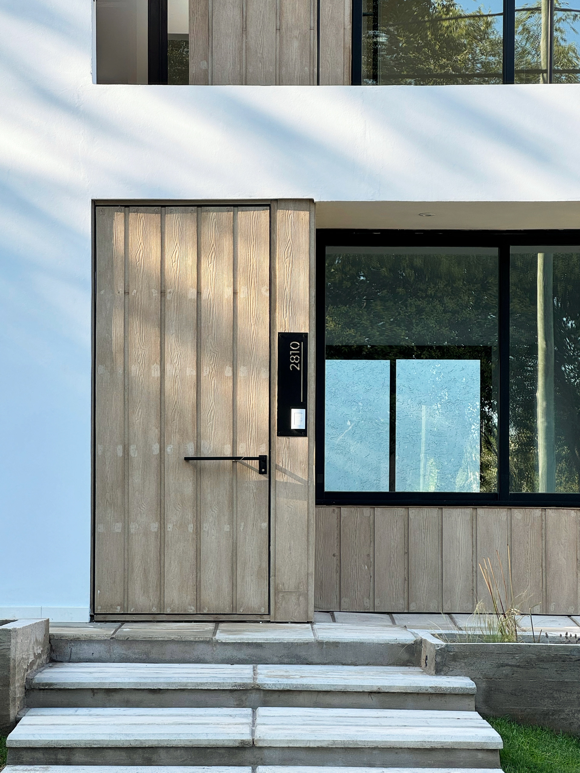 Ingreso y escalera - Combinación de materiales cemento y madera